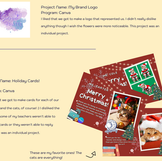 Fortunately I was able to launch my ePortfolio project with my 8th graders during the 22-23 school year. Below are the materials I provided to my students and their families before starting the project. Students were given an overall project outline at the start and at the end of each week the students and their families were provided the next week's outline mapping our the specific deliverables for the week. Students were divided into learning communities and encouraged to use them for guidance and real time feedback. Students were also responsible for writing a reflection blog at the end of each week to track their progress. The reflection blog required them to document their challenges and victories among other things. To ensure the privacy of my students I am not able to link their ePs in this blog post, but I have provided a few screenshots that demonstrate their execution of the project while protecting their identity.
